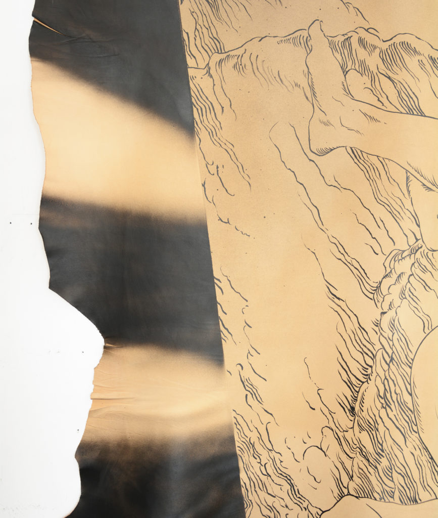 Techniques mixtes sur cuir, 158 x 178 cm, 2025