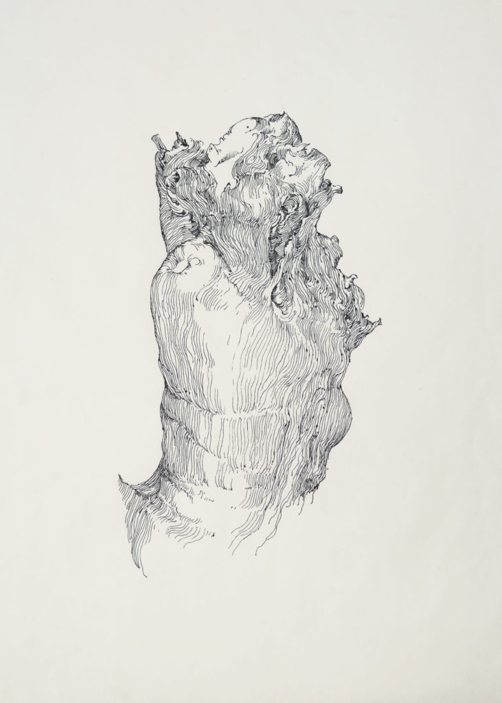 Encre de chine et encre bleu sur papier, 50 x 70 cm environ, 2025
